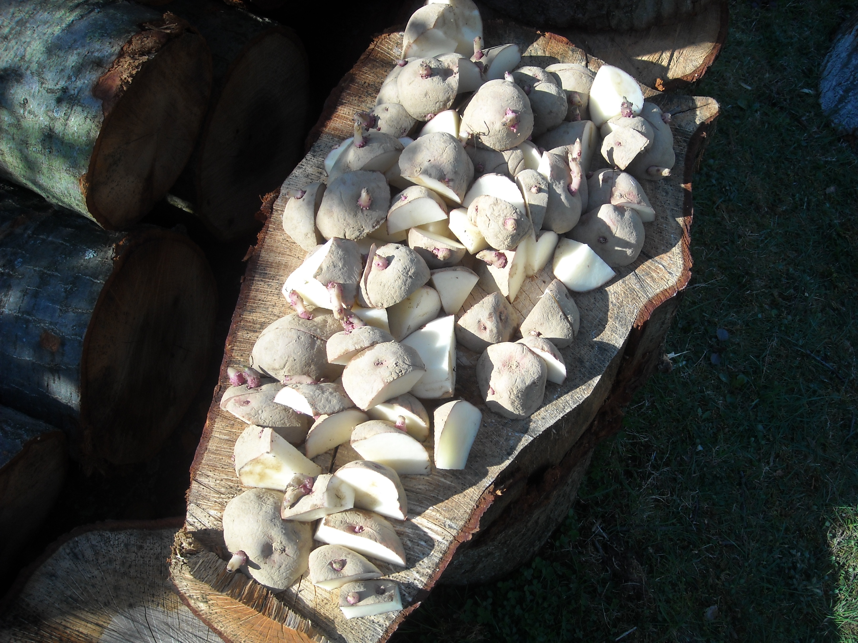 I place a little transplant mixture in the bottom of each pot. Note: make sure that whatever pot you use, there is a drainage hole in the bottom. I usually use a pot that is between 3 inches and 4 inches in diameter at the top. I have used a wide variety of pots over the years, from yogurt cups to standard green plastic pots. Recently I have been using a natural, biodegradable, and OMRI listed pot, they work really well.