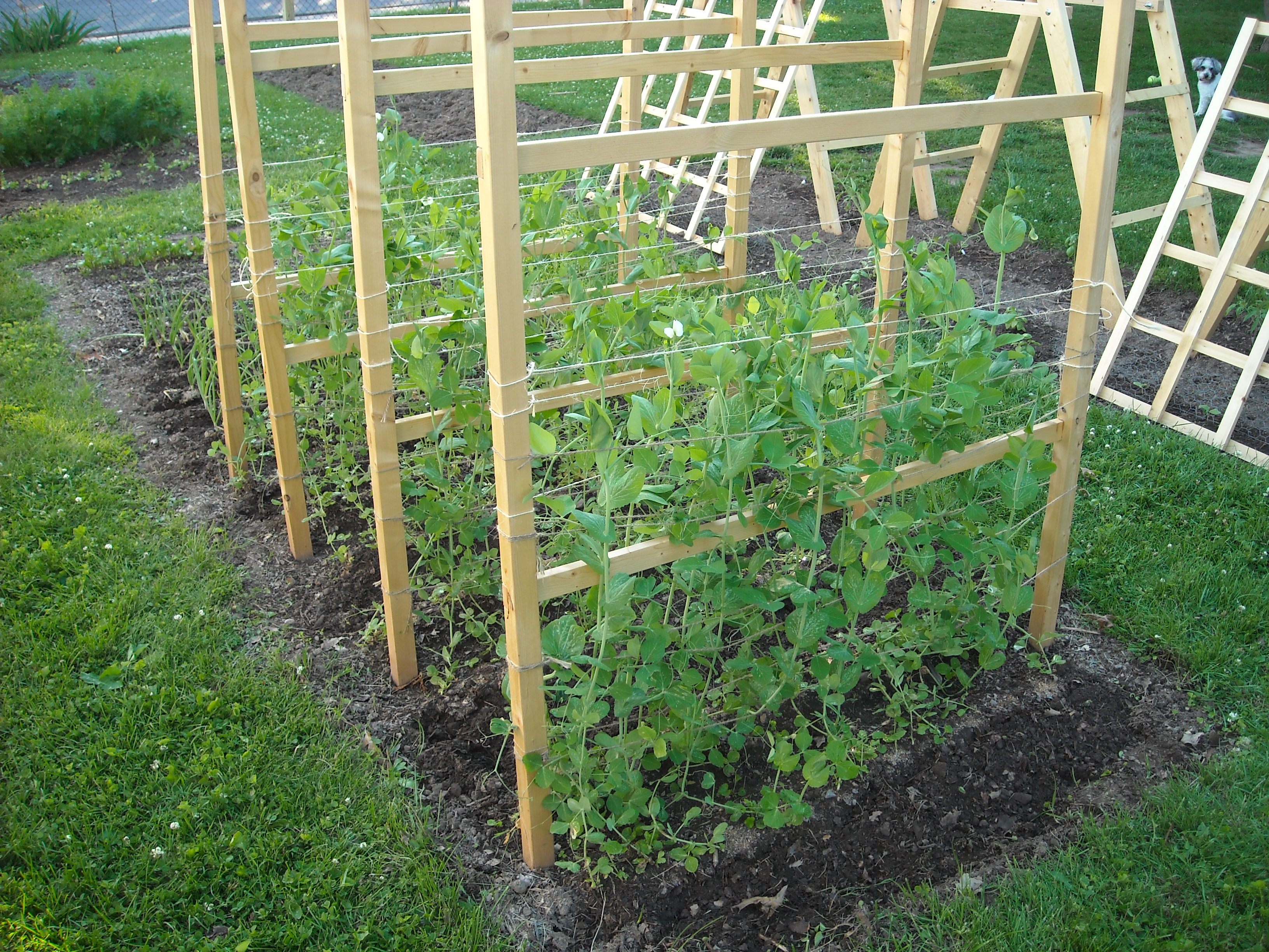 The sugar snap peas are really taking off. Some days it seems like they grow several inches at a shot. The pea fences that I built seem to be working really well so far.