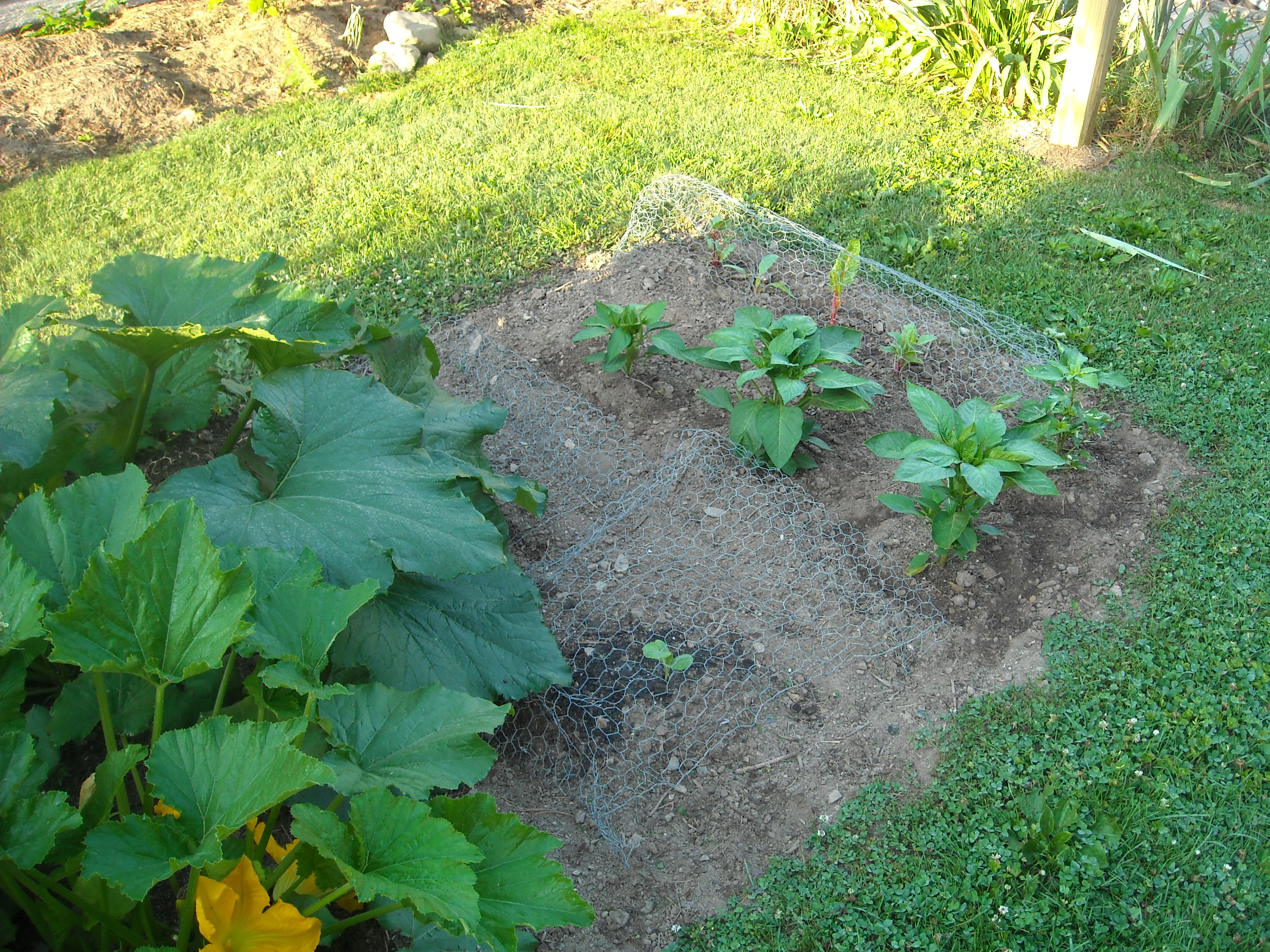 The pepper plants have really grown a lot in the last few weeks. I also have a little swiss chard growing at the end of this plot.