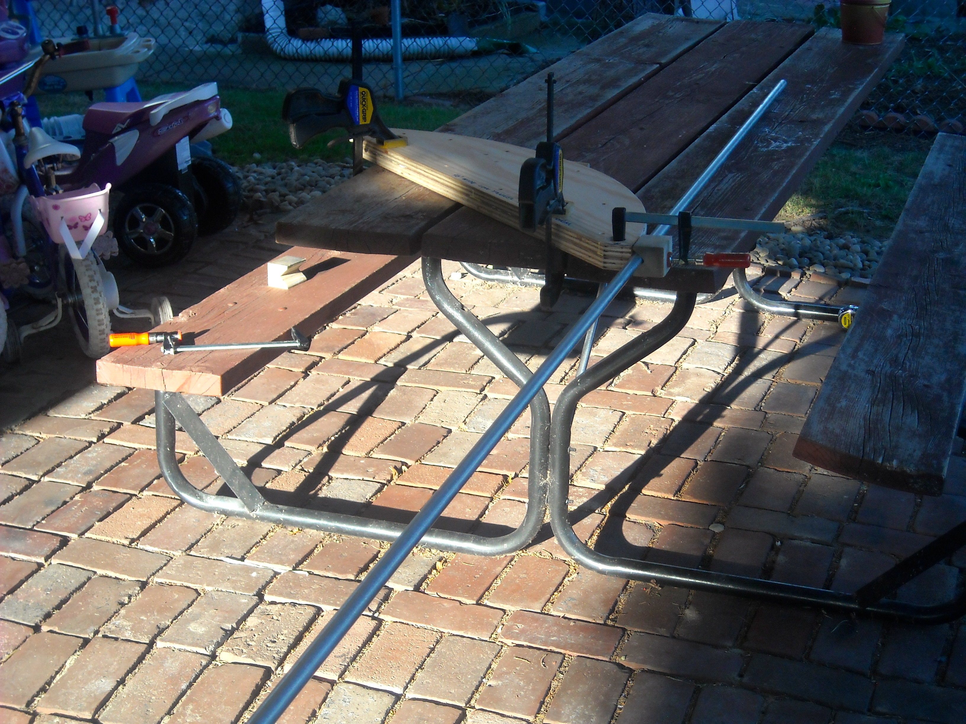 I then clamped the conduit to the bending form with a clamp and a wooden V block.