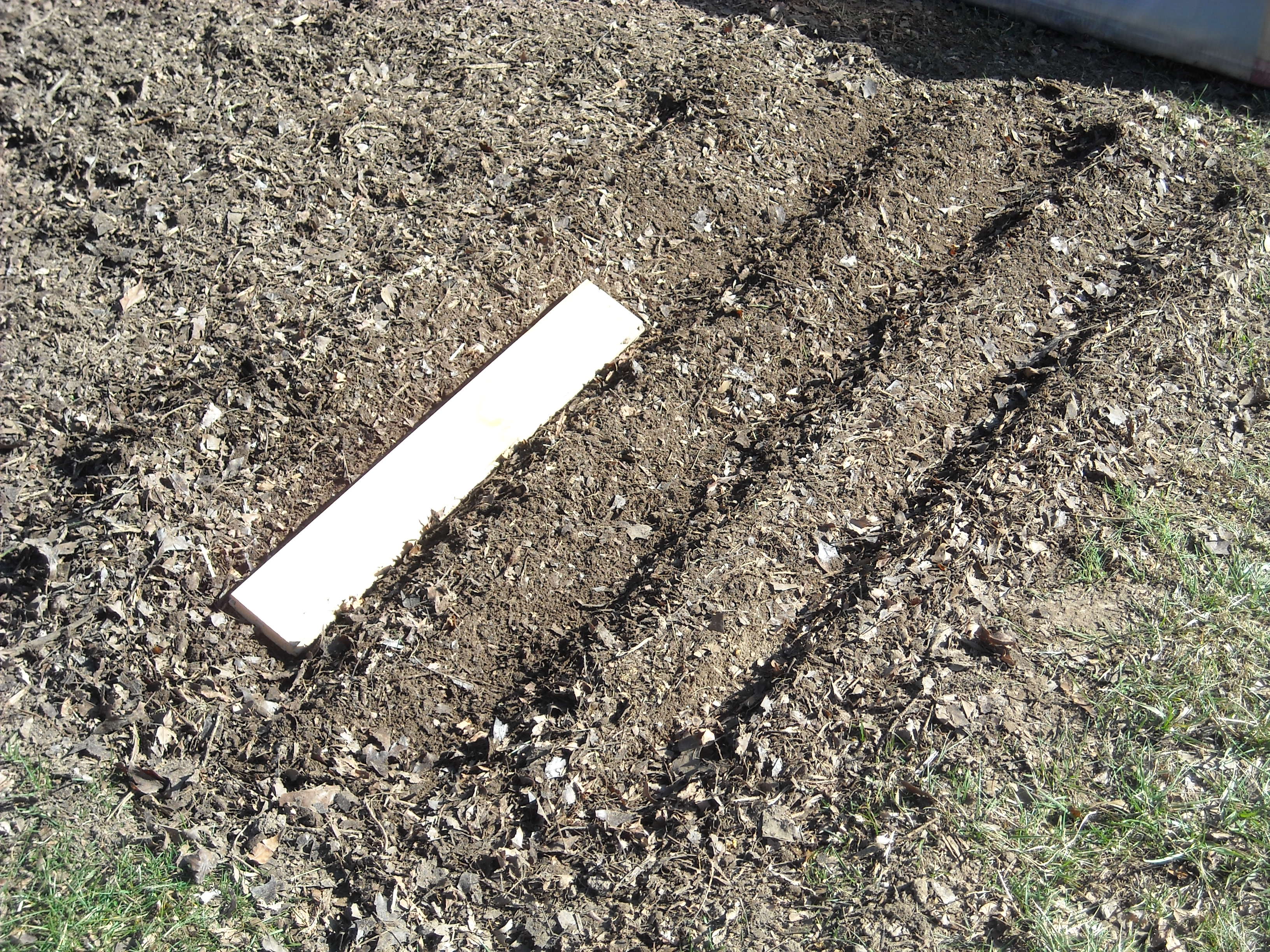 With the tilling complete it was time to focus on planting. Using an old wooden board I created two planting rows. I planted the following seeds in each row: