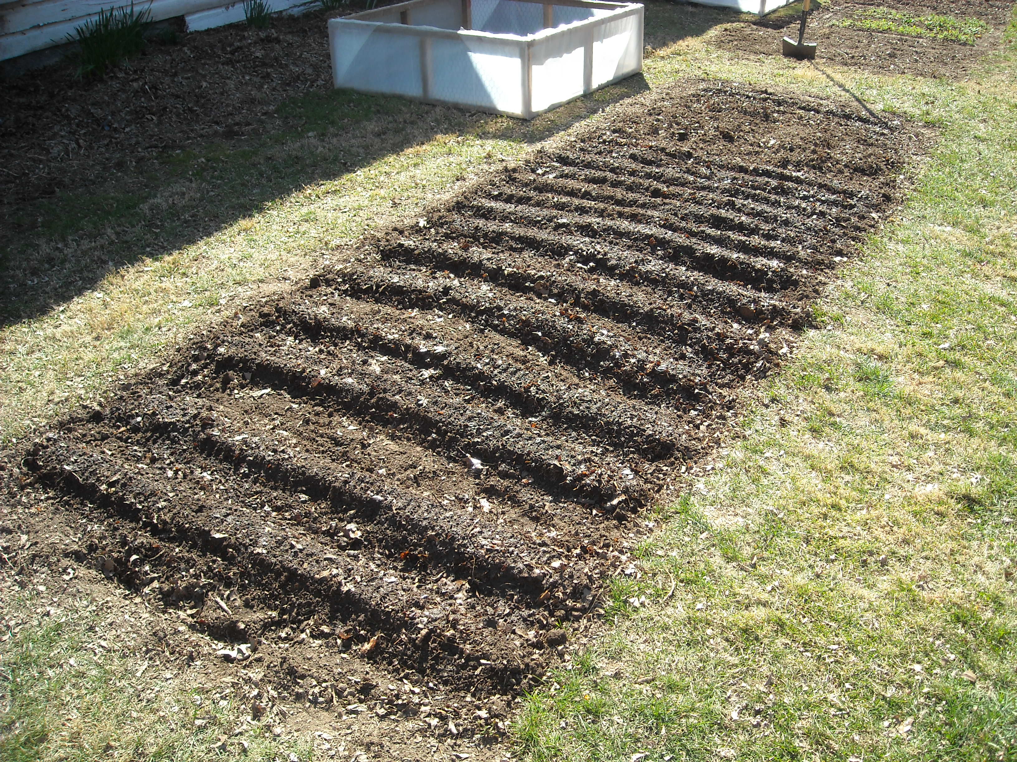 With the days getting longer and the weather getting warmer it was time to begin planting. Last fall I had covered both of the garden beds with shredded leaves, so before I began planting I ran a small rototiller through each of garden beds several times to make sure that any of leftover leaves were well incorporated.